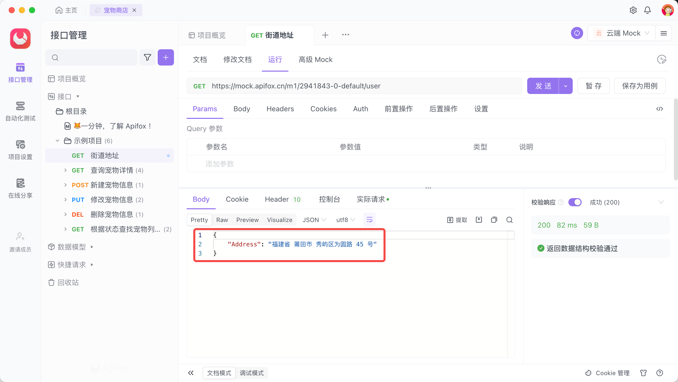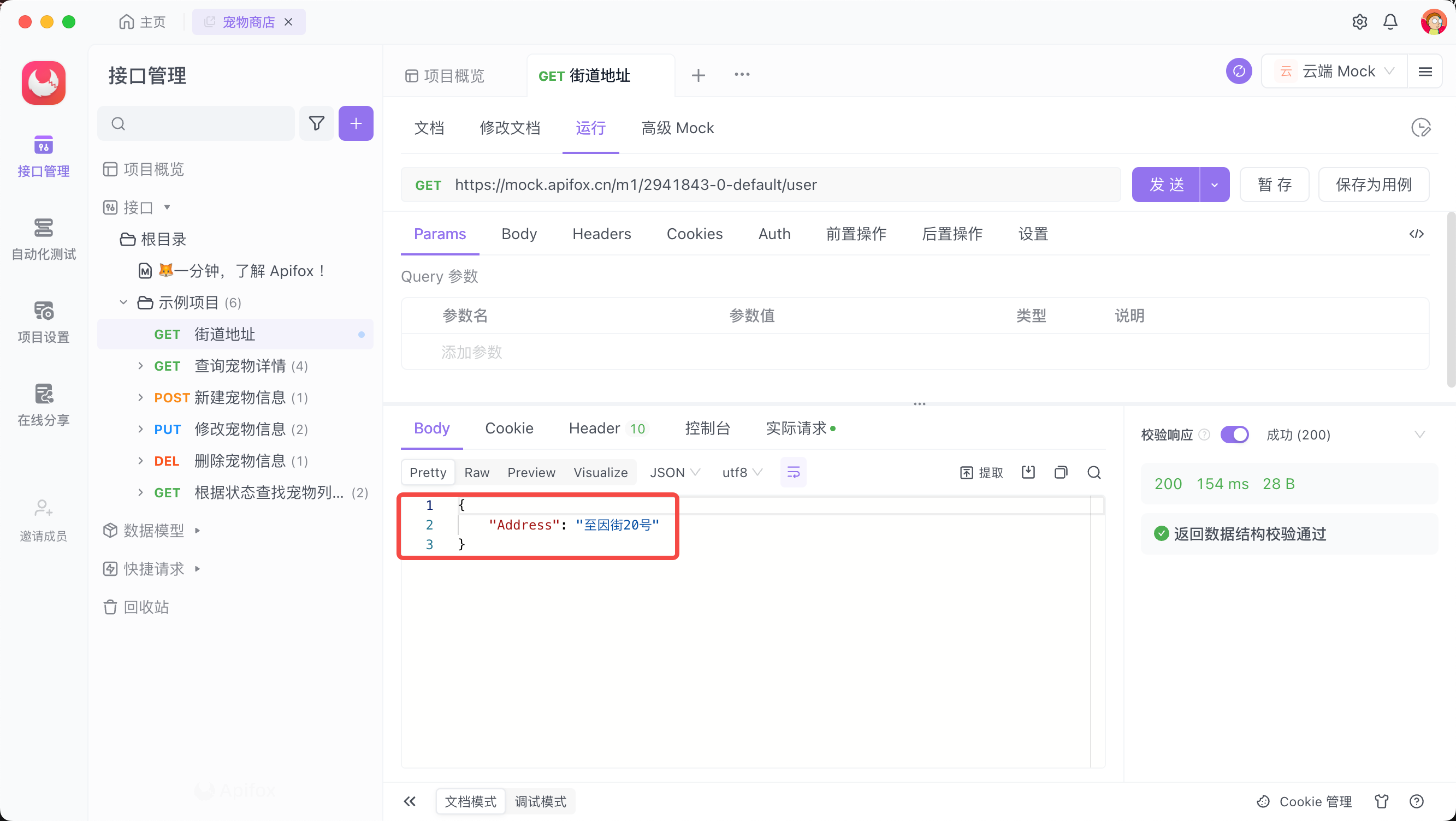 运行接口后得到以下返回响应: