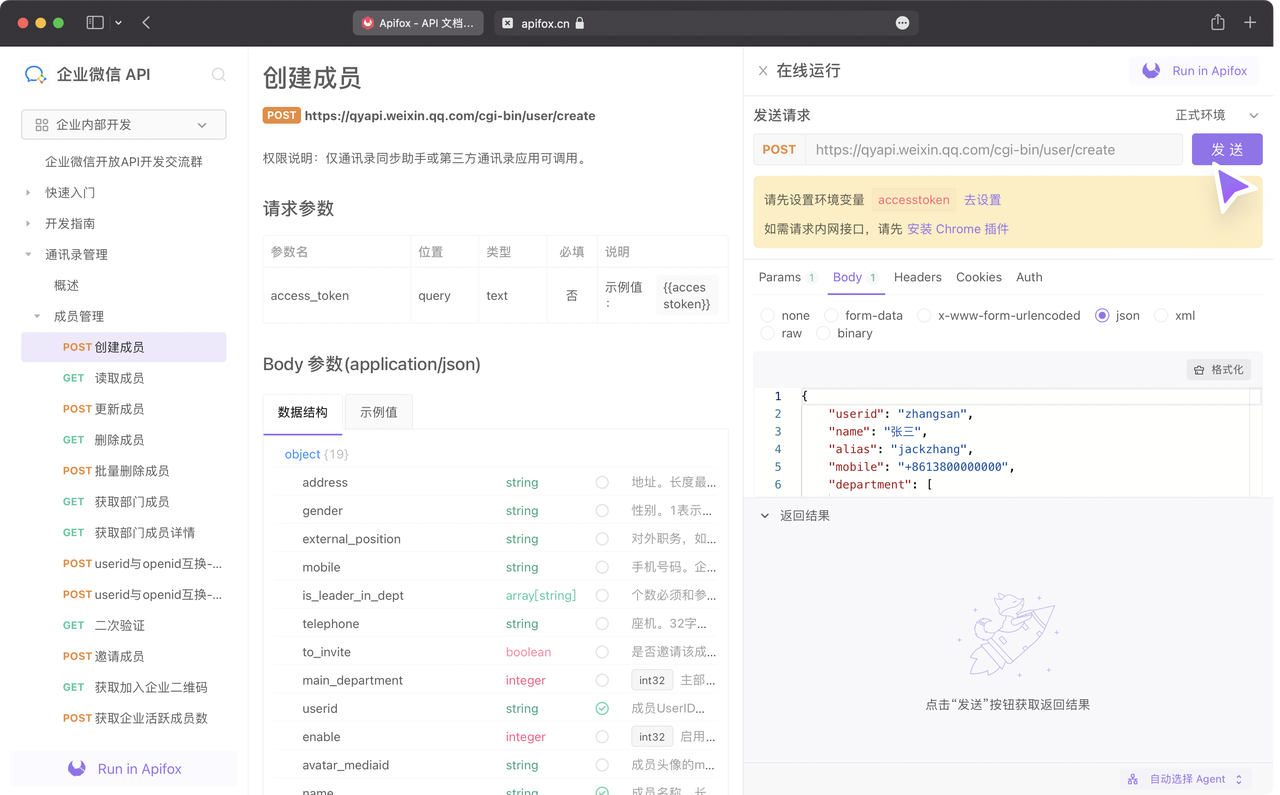 不仅在线文档支持在线运行调试,API Hub 中众多开放文档也支持,方便大家进行调试并使用,开发与对接效率再上一层。