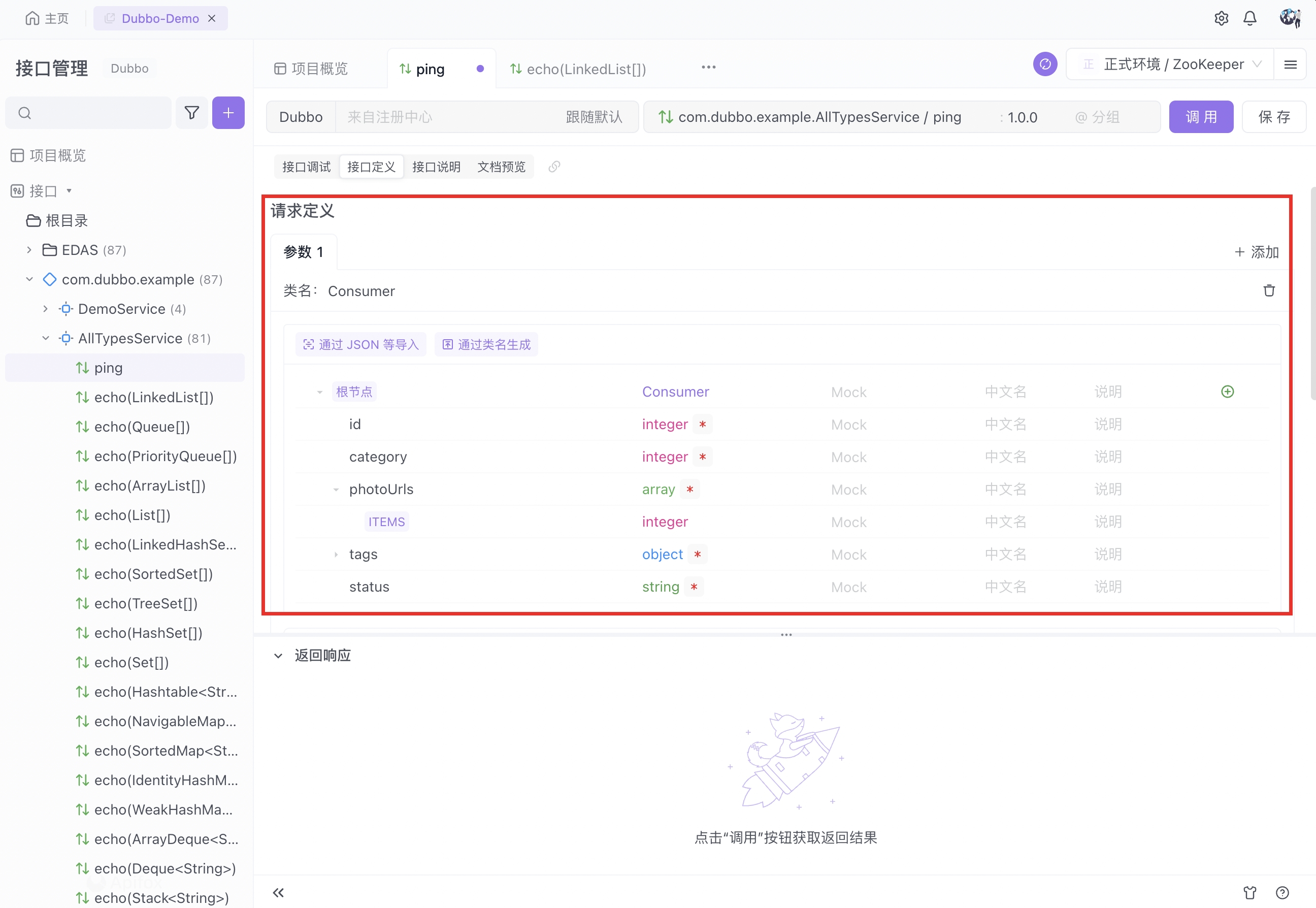 Apifox 目前支持的注册中心为: ZooKeeper、Nacos 和阿里云 EDAS。