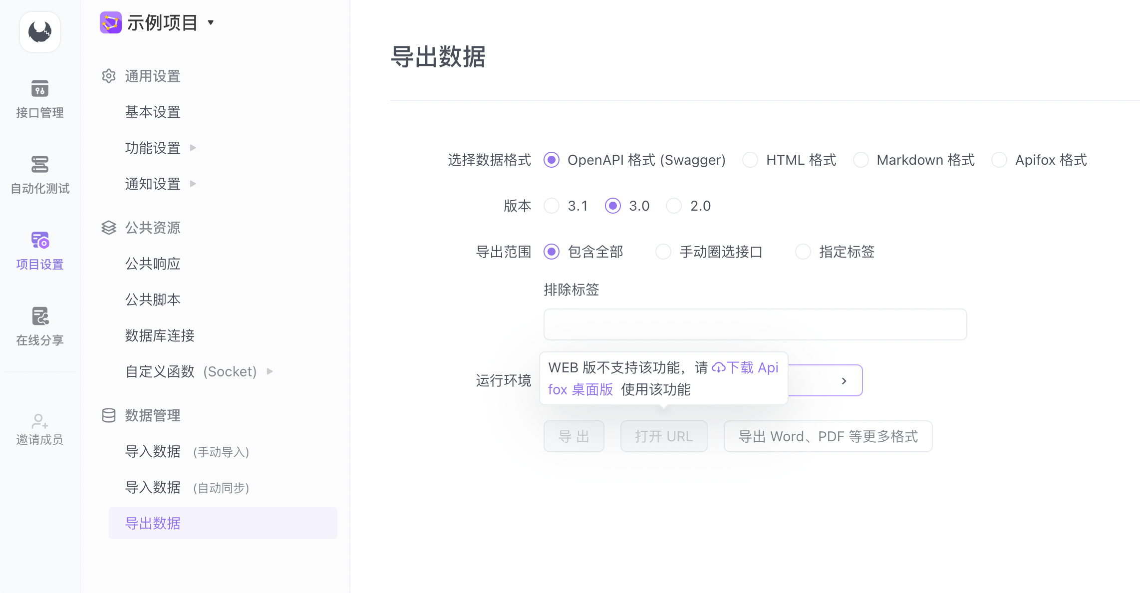 Web 端与客户端在主要流程的使用上没有明显差异,都能够满足团队内的接口协作需求,但以下功能存在差异。
