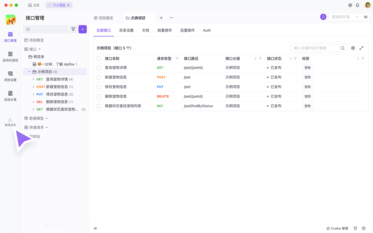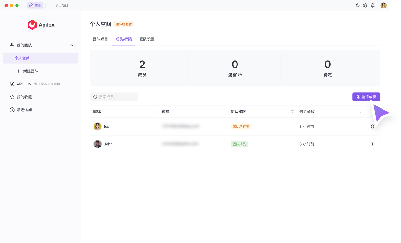 当你需要协作完成一个 API 项目时,你可以邀请一些团队成员或外部成员来一起协作。